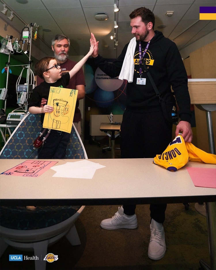 💛💜湖人在UCLA健康中心举行社区活动 詹东里与病患亲密互动